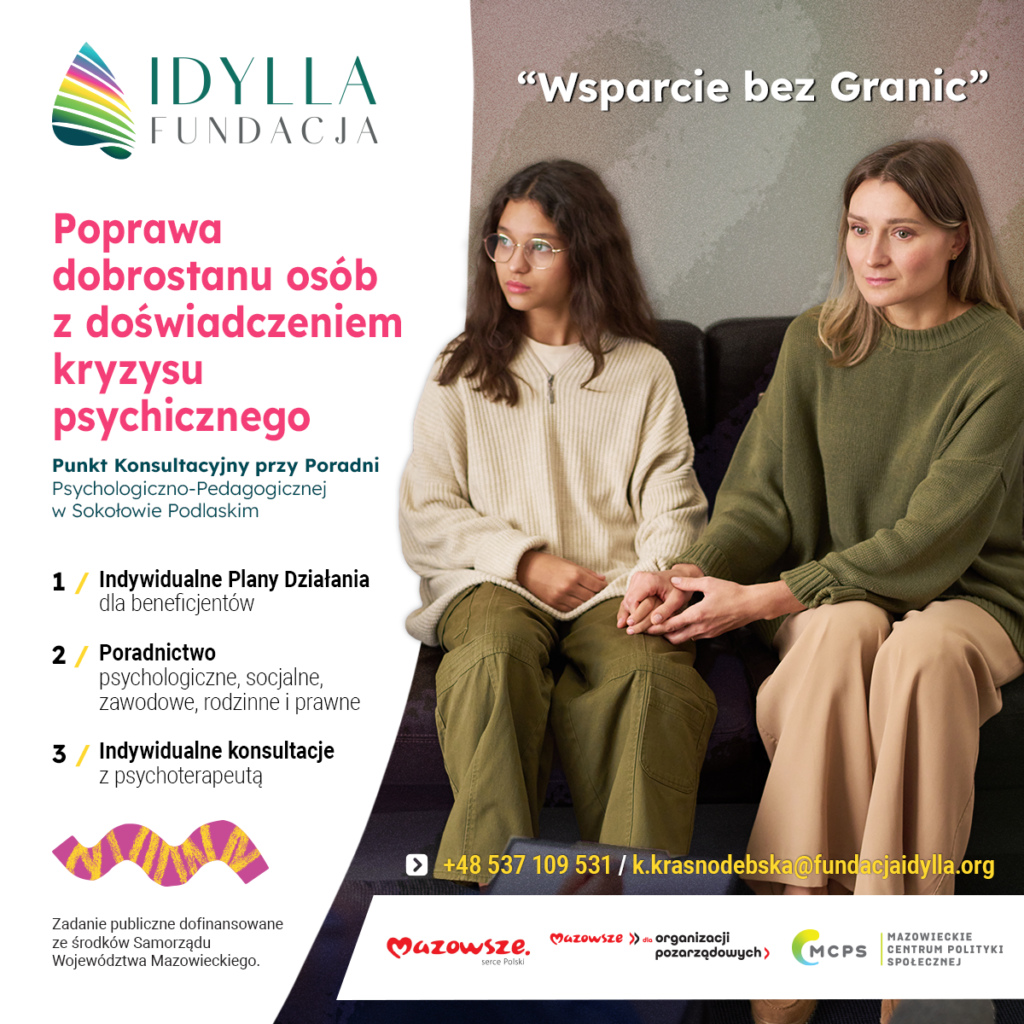 Udział we wszystkich działaniach jest bezpłatny. Jesteśmy tu, by wspierać – z empatią, zrozumieniem i bez oceniania. Nie musisz radzić sobie sam. Skorzystaj z pomocy.